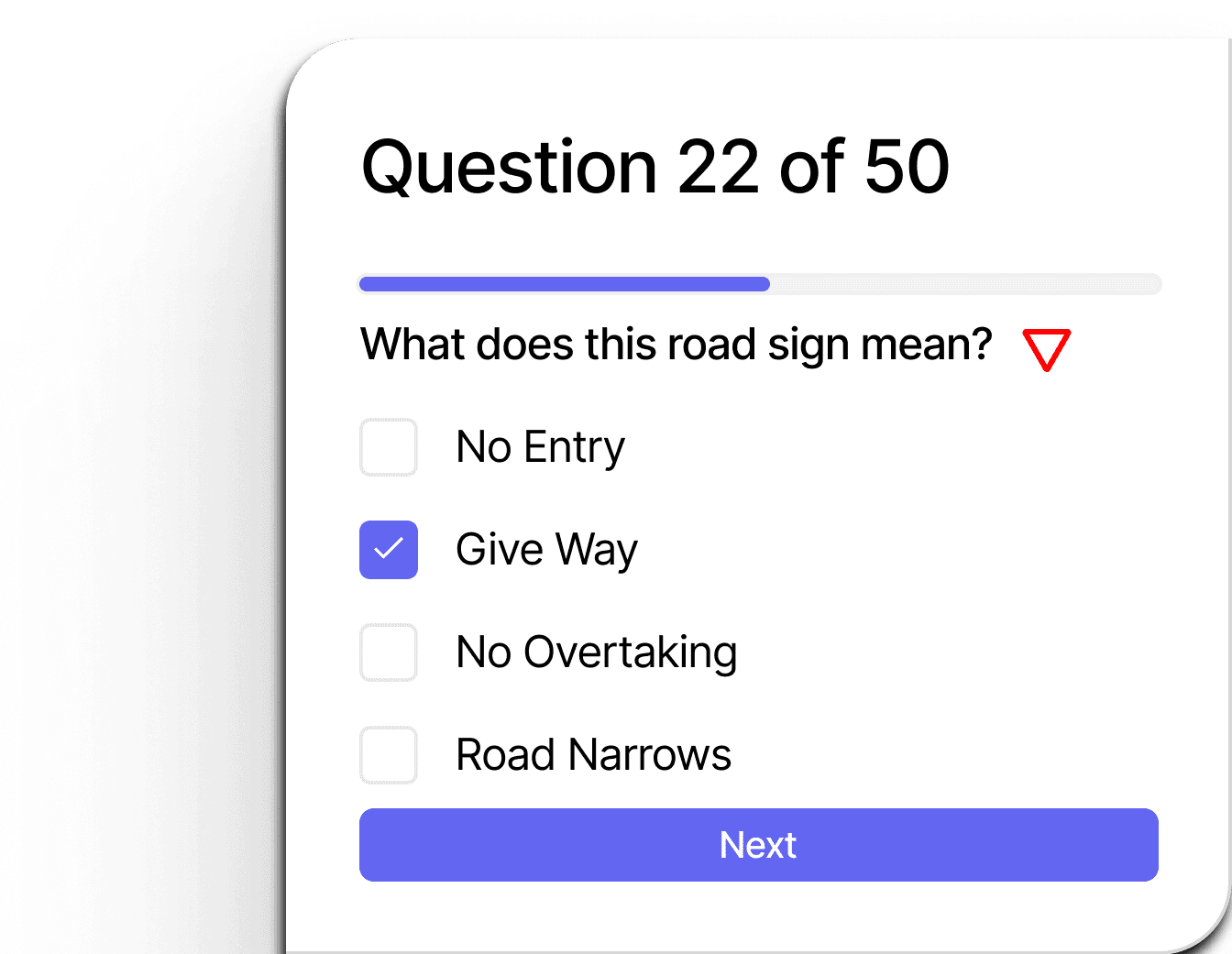 Master road signs and markings with visual flashcards. Perfect for studying on the move.